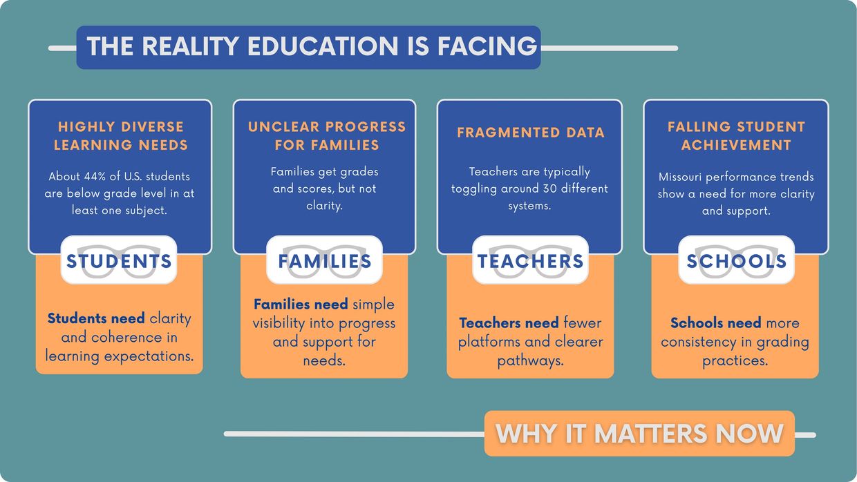 Our platform offers a fresh approach to tracking and reporting academic progress, social development, and areas for growth. But we don’t stop at data. We pair these insights with targeted resources for families and professional development for educators—ensuring support is not just available, but actionable.